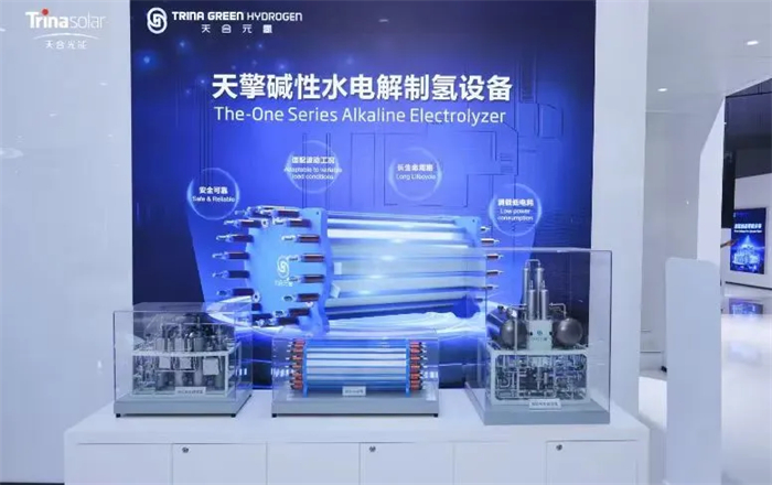 本次展会上,,,,,,,天合元氢携橇装式制氢装备——天擎系列碱性水电解槽、集装箱式制氢装备、移动式制氢装备及“光储氢”一体化解决计划亮相。。。。。自2023年天合元氢宣布首款大型碱性水电解槽——天擎系列产品以来,,,,,,,已完成多个项目交付,,,,,,,在项目现场,,,,,,,天擎系列产品稳固运行,,,,,,,已实现无走漏、无短路、无打火的运行状态。。。。。尤其是在低负荷工况下,,,,,,,实现了30%电力负荷状态下平稳运行8小时以上,,,,,,,氧中氢纯度仍能坚持稳固不超标。。。。。